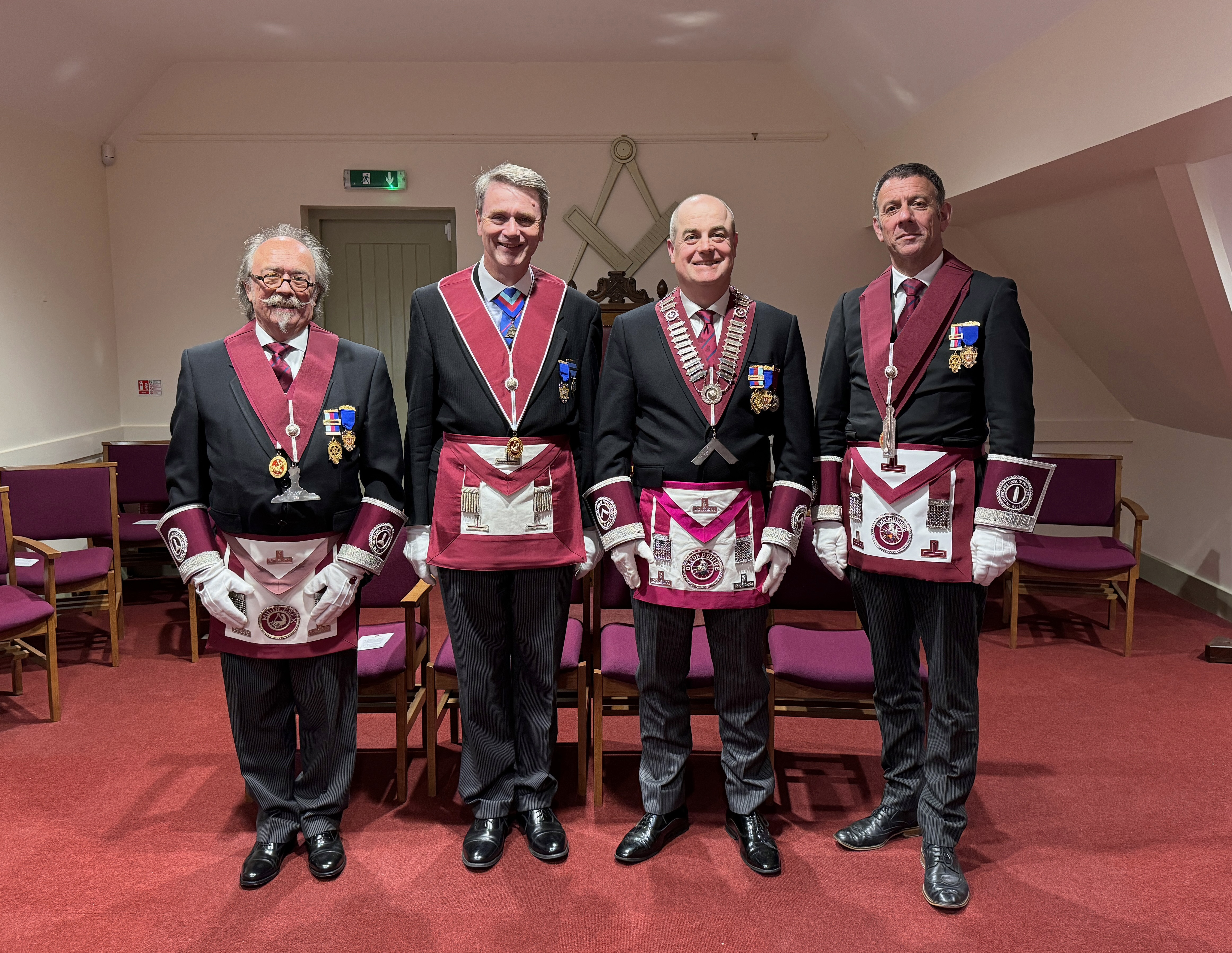W Bro Ivor Hawkins SW, RW Bro Prof Stephen Tucker PGM, W Bro David Robinson WM, W Bro Paul Buck JW